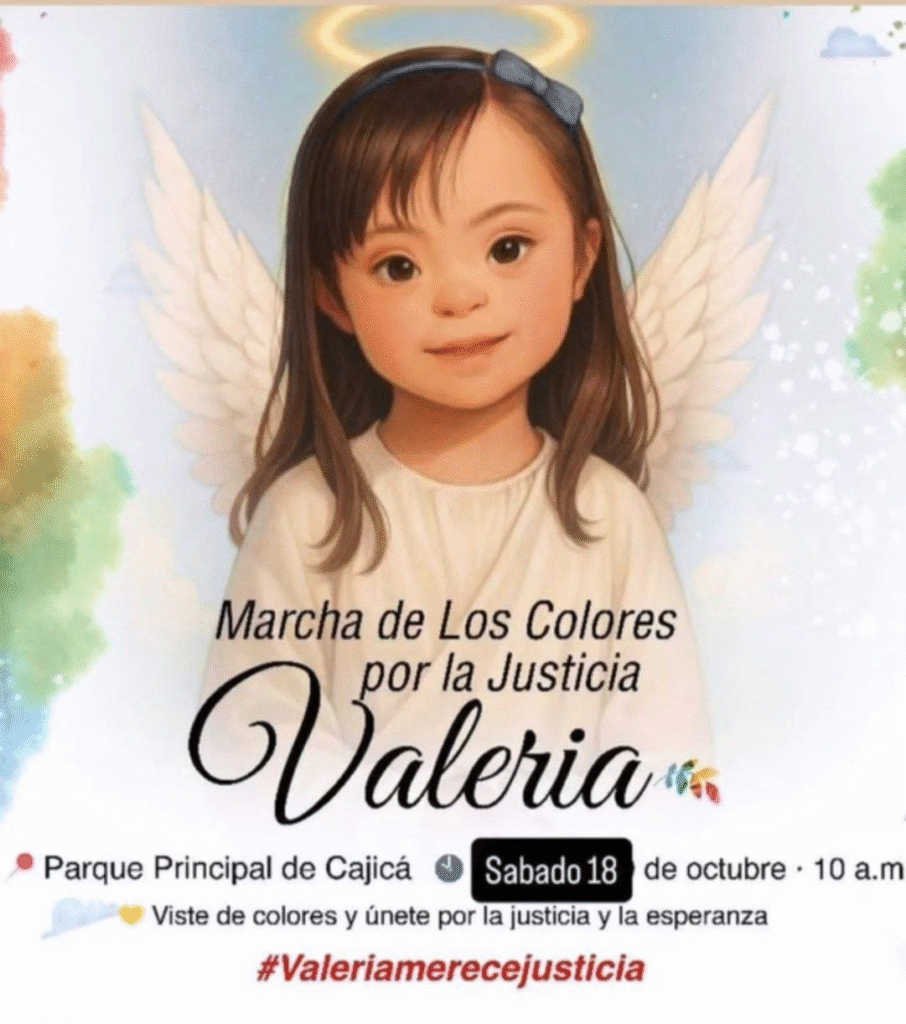 Este sábado 18 de octubre, el Parque Principal de Cajicá será escenario de una movilización pacífica en memoria de Valeria Afanador Cárdenas, la niña de 10 años con síndrome de Down cuyo caso sigue conmoviendo al país.