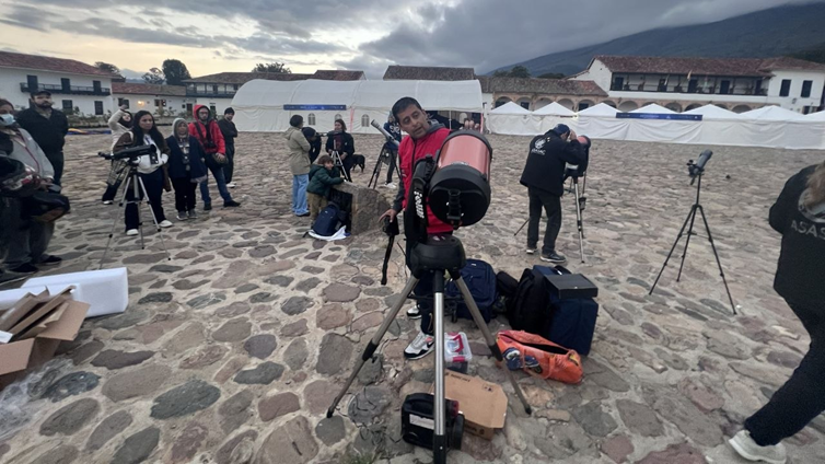 Turistas somnolientos, curiosos trasnochados y astrónomos perfectamente despiertos se dieron cita en la Plaza Mayor, rodeando una docena de telescopios de la Asociación de Astrónomos de Colombia (Asasac) que apuntaban, disciplinados, hacia un cielo que parecía tener otros planes.