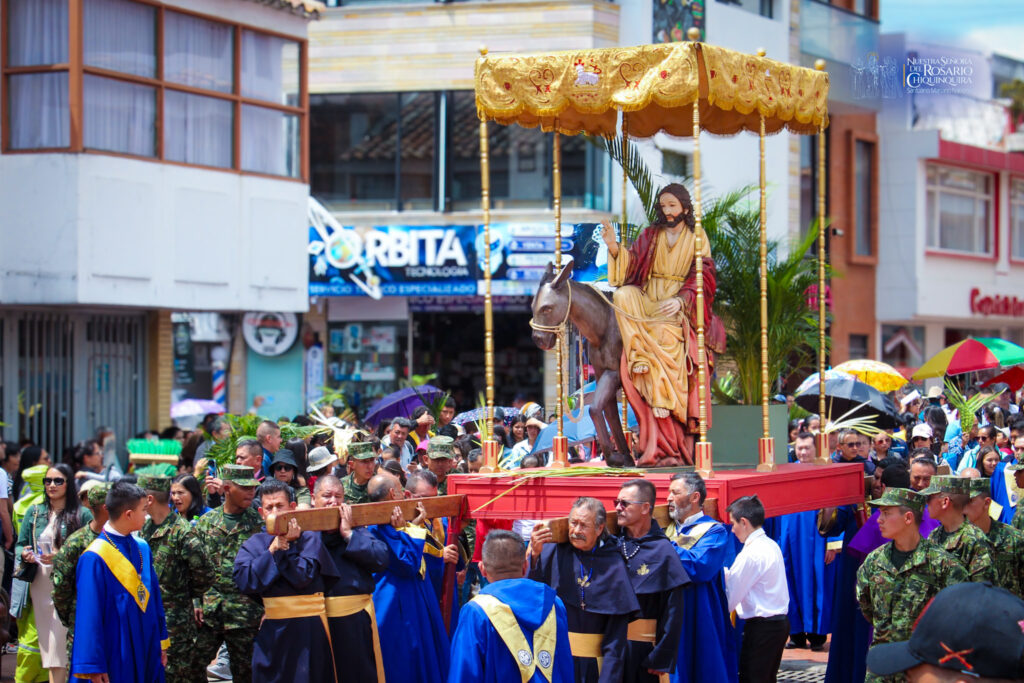 Aquel día, montado sobre un borrico, el Señor fue recibido por multitudes que lo aclamaban con ramas de palma y olivo, a la vez que se despojaban de sus mantos para ponerlos a sus pies (Lc 19. 28,44). Hoy, cada Domingo de Ramos, los creyentes replican este gesto con procesiones en las que llevan ramas de palma bendecidas.