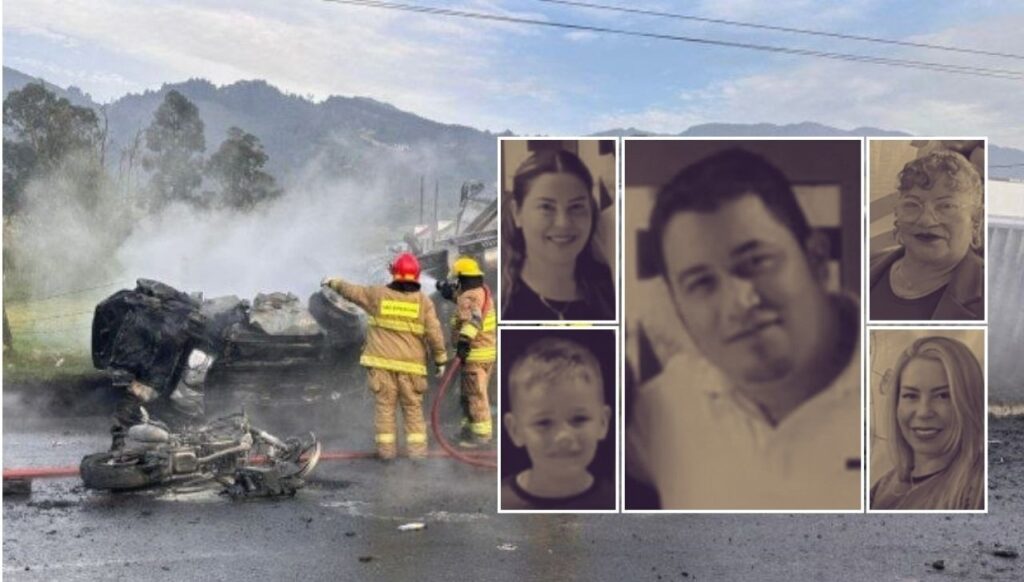 Los cinco integrantes de esta familia viajaban en un carro particular y con su perro, cerca del peaje cuando un tractocamión, que habría quedado sin frenos, se chocó con diferentes vehículos y causó una explosión en las cercanías del peaje en la vía entre Zipaquirá y Ubaté.