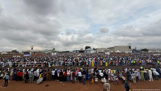 El Papa fue recibido con enorme entusiasmo por las decenas de miles de personas que se congregaron en la misa en el aeropuerto de Yaundé para esa celebración, último acto de la visita a Camerún, donde en estos tres días la población se volcó a las calles para saludar el paso del pontífice estadounidense.