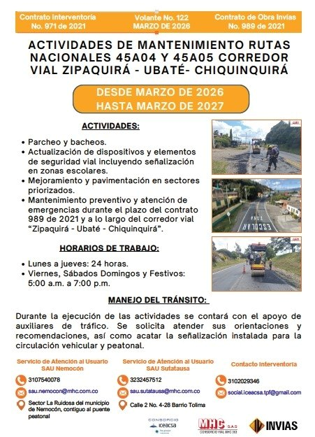 El corredor vial que comunica a los departamentos de Cundinamarca y Boyacá ha entrado en una fase de intervención estructural programada hasta marzo de 2027. Bajo los contratos de obra e interventoría suscritos por el Invías en 2021, las cuadrillas del consorcio ejecutor realizan actualmente labores de recuperación de calzada y actualización de elementos de seguridad. Estas acciones se concentran en las rutas 45A04 y 45A05, afectando el tránsito de manera directa a la altura del peaje de Casablanca.